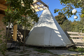 К типи прилагается индивидуальный мини-домик, в котором есть кухня, душ и полноценный туалет (мини-домик находится на территории фермы в 90 м от типи).